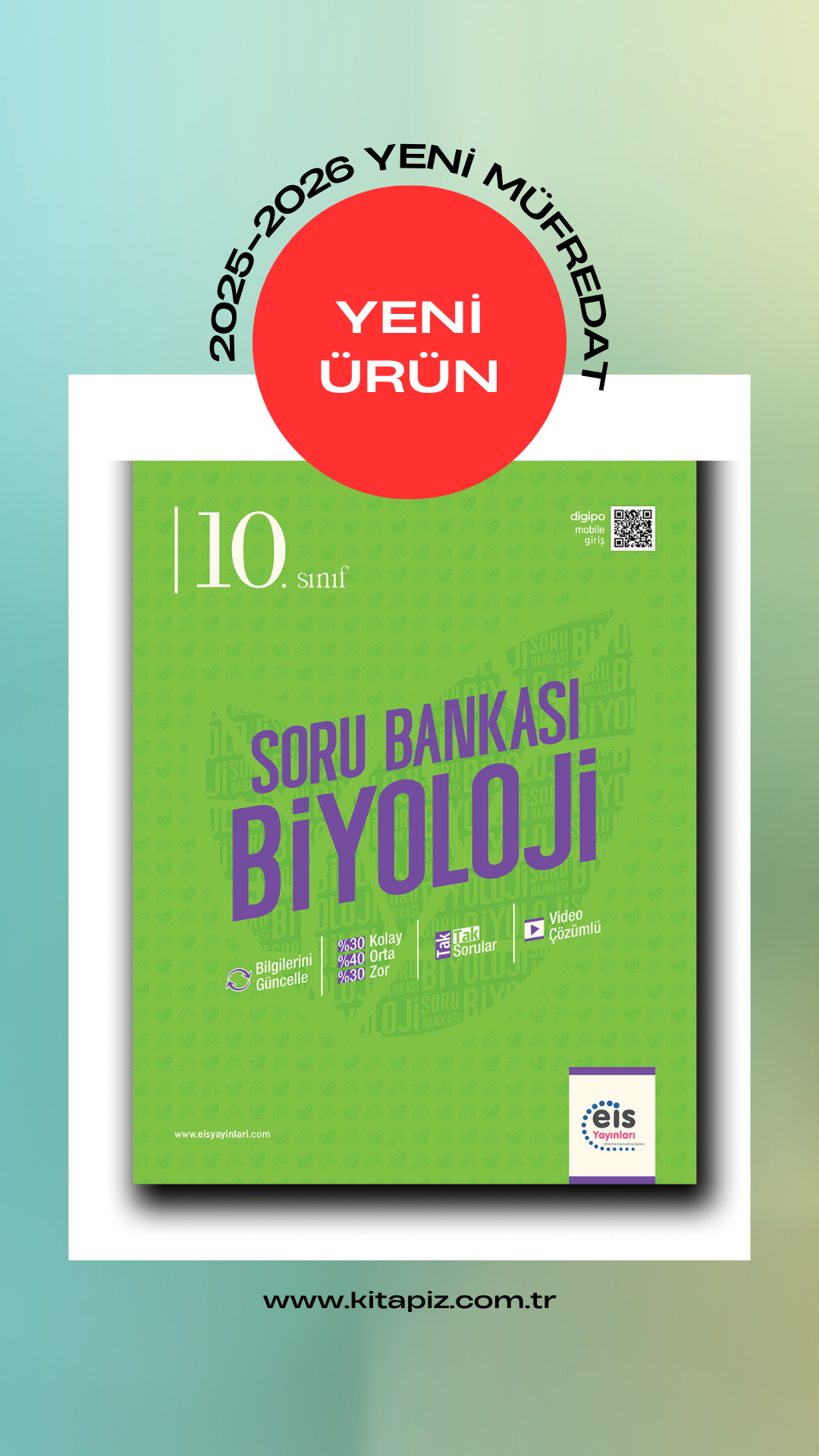 Coğrafya 10. Sınıf Soru Bankası EIS Yayınları’nın özgün serisi, %30 Kolay, %40 Orta %30 Zor sorulardan oluşmaktadır. Sorularımızın tamamı video çözümlüdür.